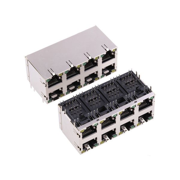 8P8C Female 2X4 8 Port RJ45 Jack Connector With LED Light Images |